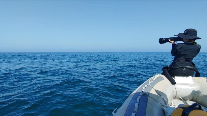 장수진 펠로우 / 돌고래 연구는 해외에서 이미 많이 진행이 됐어요. 그런 연구들을 살펴보면 제주에서 벌어지고 있는 상황과 매우 유사한 상황이 이미 벌어진 곳들을 찾을 수 있어요. 관광 선박이 들어온다든지 해양쓰레기에 걸린 돌고래가 있다든지요. 짧은 기간이 아닌 5년, 10년, 15년 뒤에 어떤 결과가 나타나는지를 해외의 연구를 통해 확인하고 있는데, 분명 우리에게도 시간이 지나면서 해외에서 시행착오를 겪었던 문제들이 나타날 거예요. 그런 문제를 미리 파악해서 사전에 사람이 조금만 주의하고  양보하면 동물과 계속 살아갈 수 있을 거라는 걸 알리고 싶었어요. 사람이 아닌 동물의 입장에서 바다와 바다의 문제를 얘기해야 했어요.
