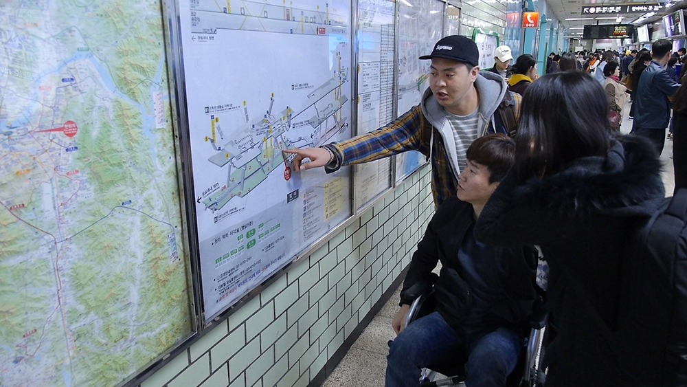 그래서 2016년 가장 환승이 어려운 역부터 총 18개 역에 대한 지도 작업을 했어요. 그 과정에서 서울디자인재단을 통해 모집한 시민 자원봉사자들이 직접 휠체어를 타고 다니며 불편한 점도 기록하고 보완하면서 지도가 완성되었습니다.